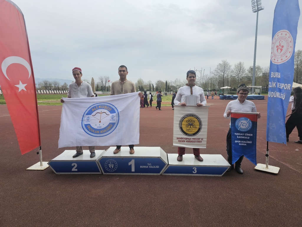 Geleneksel Türk Okçuluğu Bursa İl Şampiyonası'na katılan birçok öğrencimiz hem takım halinde hem de bireysel başarılara imza attılar. 25-26-27 Mart 2025 tarihinde yapılan yarışmada Minik Kızlar'da Elif Erva KILINÇ birinci, Hilal ABACI ikinci, Hatice Beyza FEHİMOĞLU üçüncü oldu. Minik Erkekler'de Oğuz Tuna ÖĞRETEN üçüncü oldu. Turgay Ciner Spor Kulübü öğrencilerimizden Yıldızlar grubunda Ahmet ABACI ikinci, Gençler A grubunda Deniz Eymen İPEKTEN dördüncü oldu ve Türkiye finallerine katılmaya hak kazandı. Öğrencilerimizi, desteklerinden ötürü velilerimizi ve özveriyle sporcularımızı çalıştıran müdür yardımcımız Ercan AKSAKAL’ı tebrik ediyor, kutluyoruz. Katılım gösteren tüm sporcularımıza teşekkür ediyoruz.
